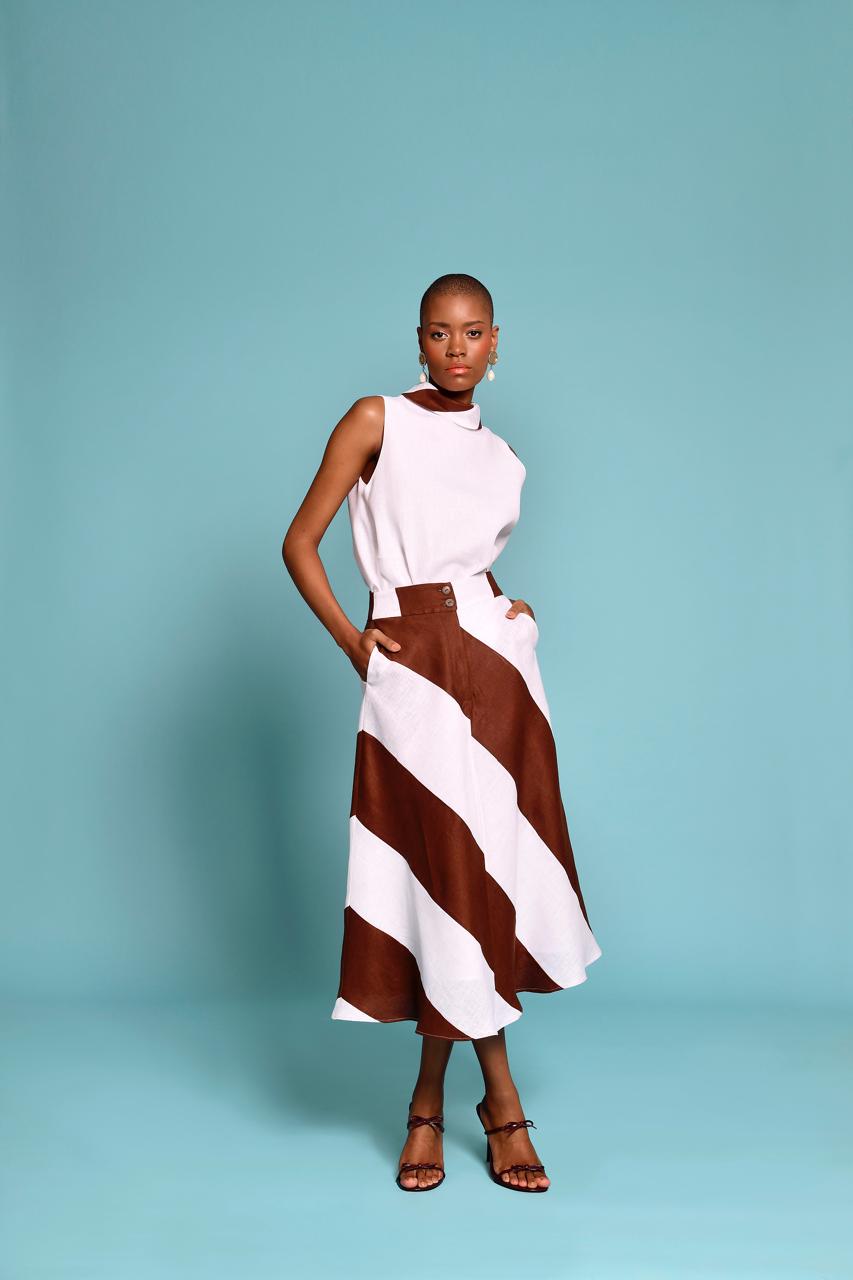 Blusa elegante y minimalista confeccionada en tela de lino. Presenta un diseño de cuello tortuga y cortes...