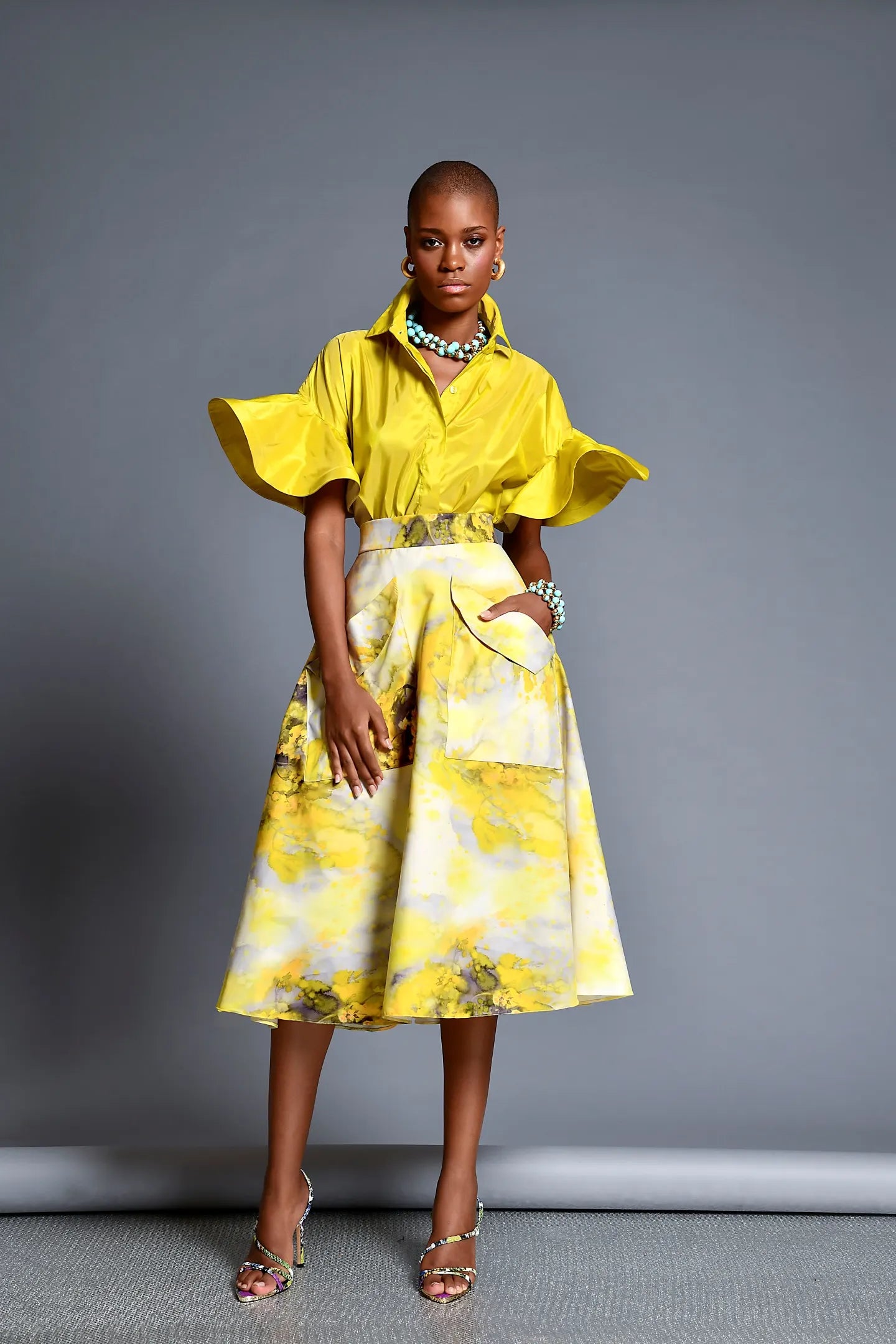 Taffeta blouse in light blue, with a corrugated process that provides texture and sophistication. It features a...