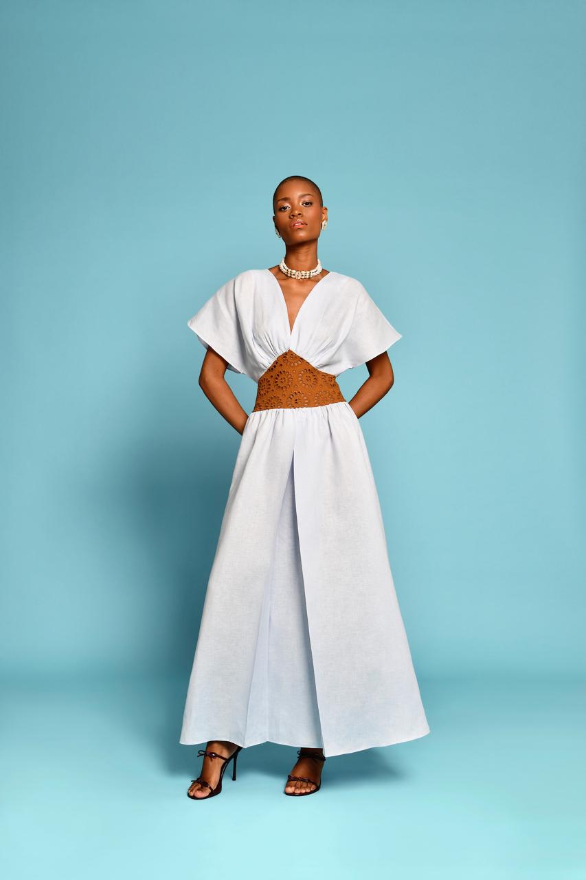 Vestido sofisticado con escote en V y fruncido central bajo el busto que estiliza la silueta. Sus...