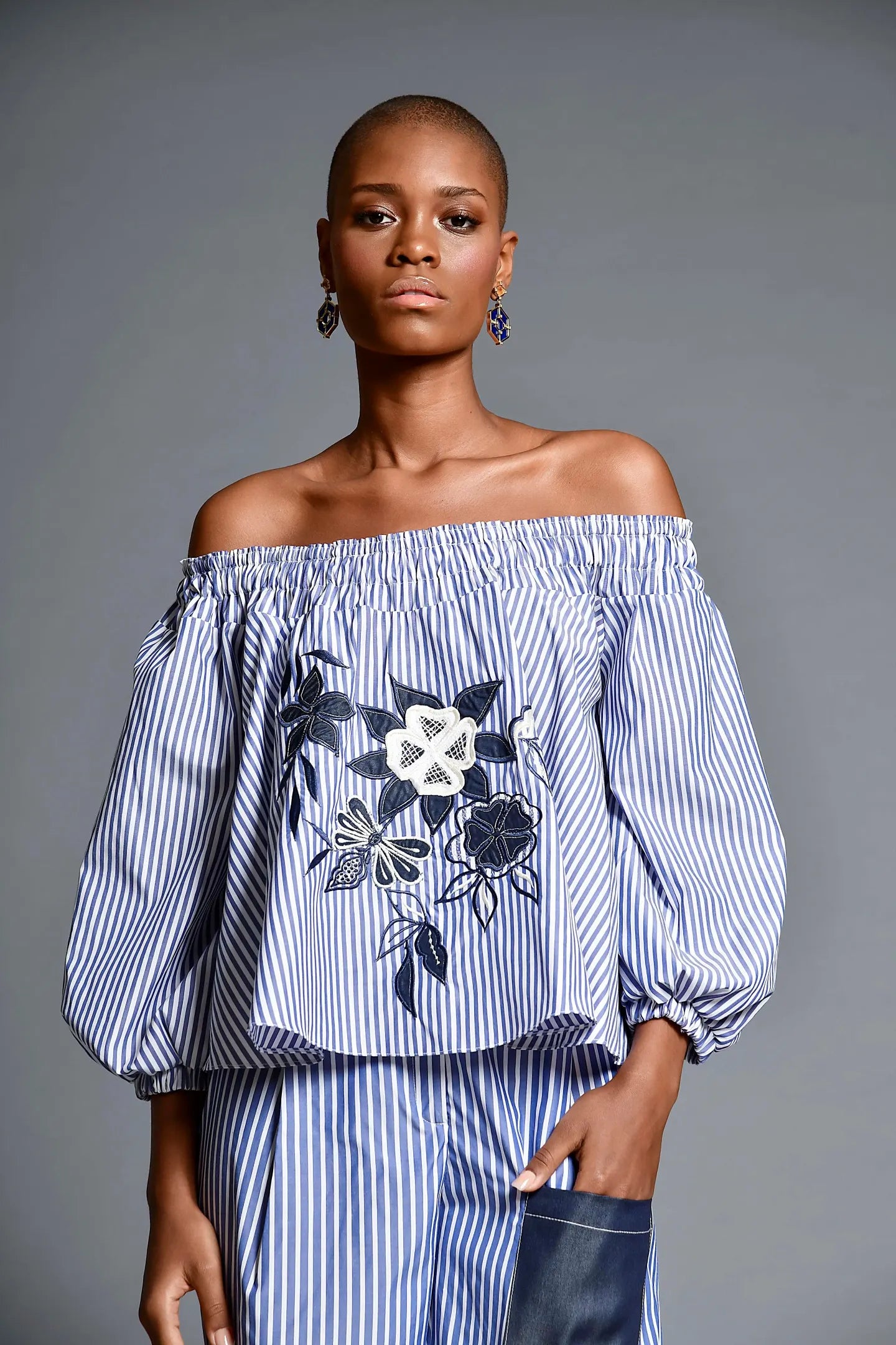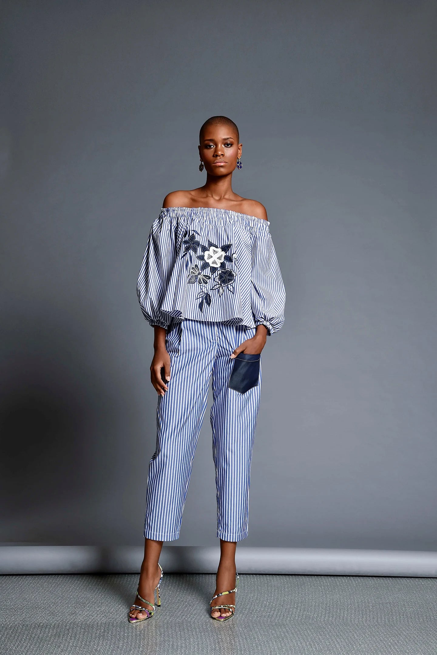 Taffeta blouse in light blue, with a corrugated process that provides texture and sophistication. It features a...