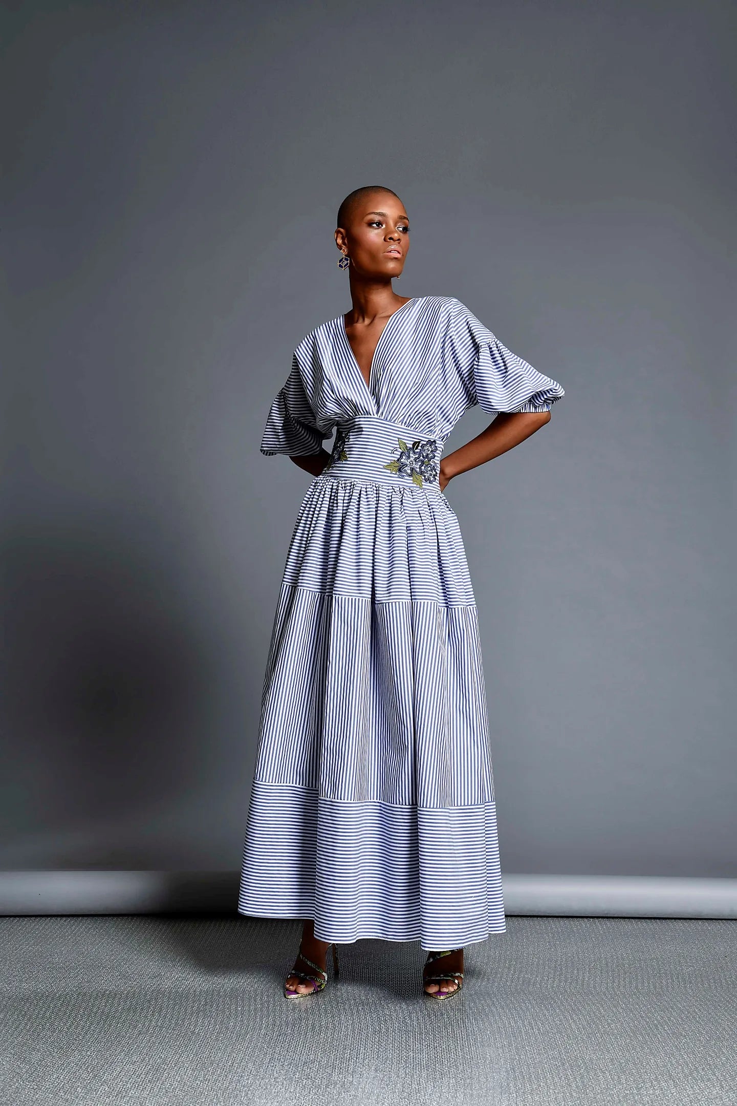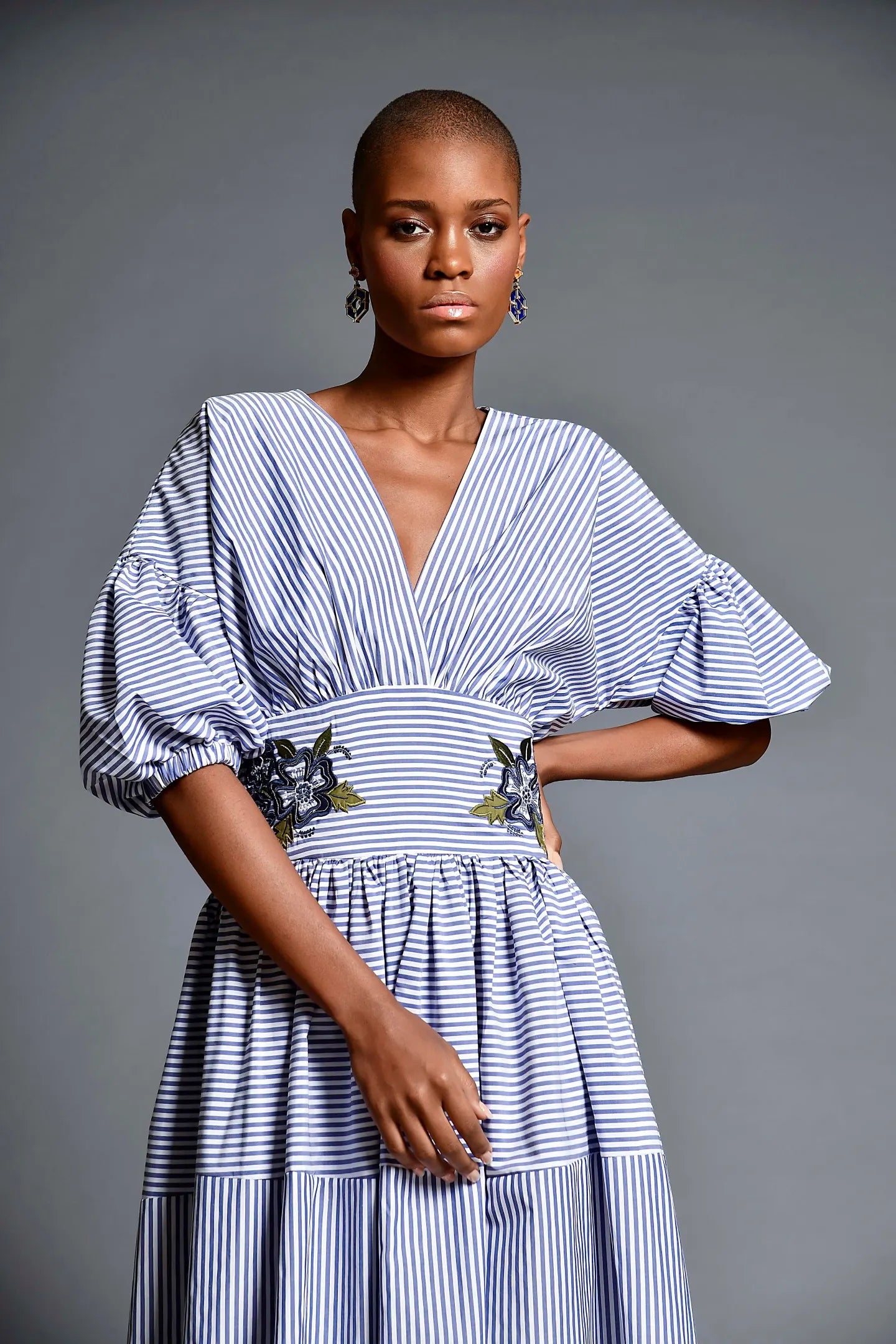 Taffeta blouse in light blue, with a corrugated process that provides texture and sophistication. It features a...
