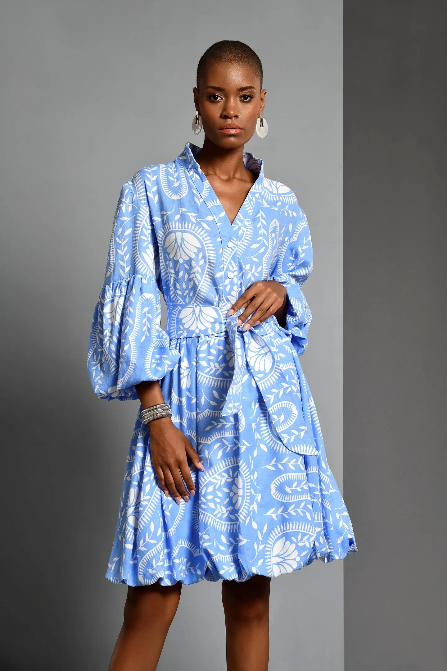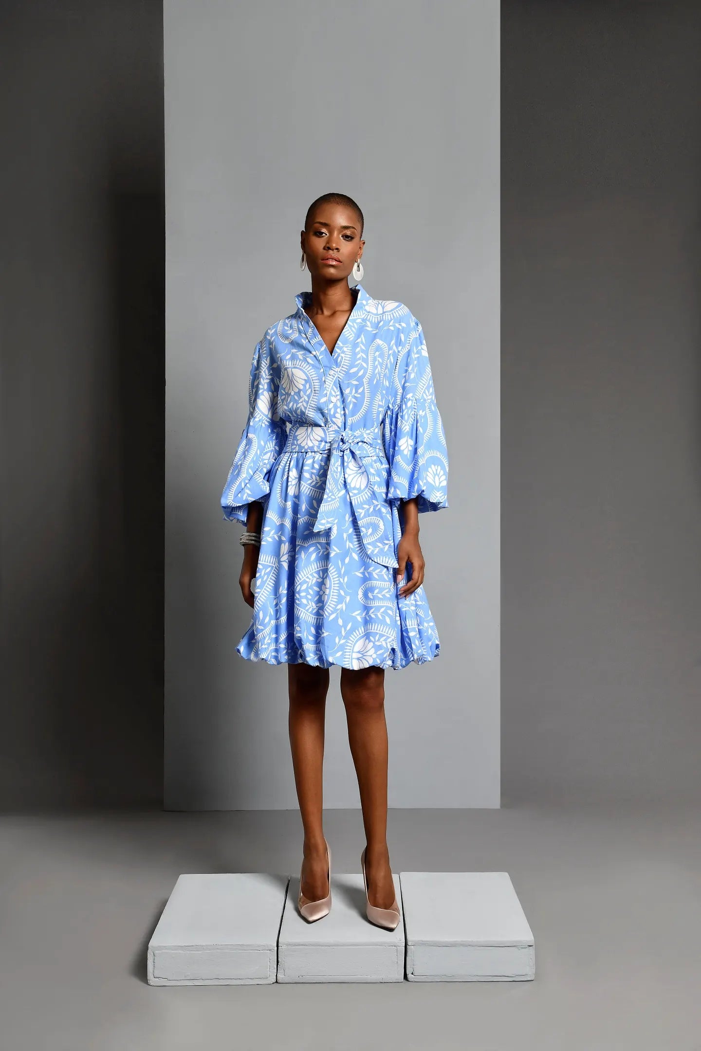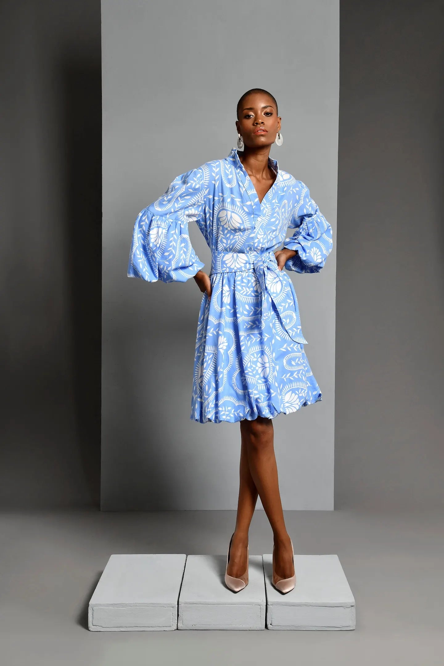 Taffeta blouse in light blue, with a corrugated process that provides texture and sophistication. It features a...