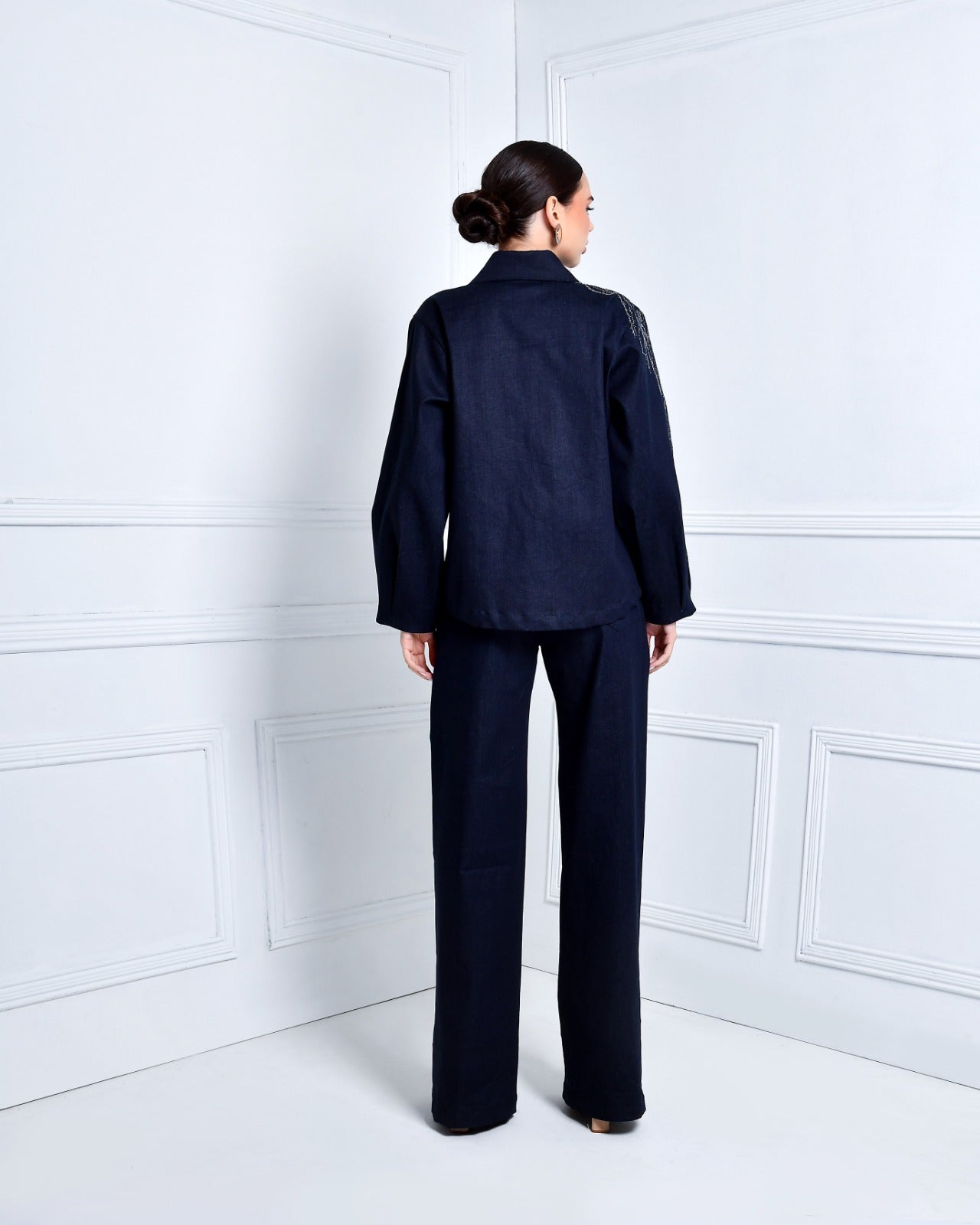 SET CAMISA Y PANTALON. CAISA MANGA LARGA ANCHAS, PECHERA INVISIBLE CON BOTONES A PRESION Y BORDADO A...