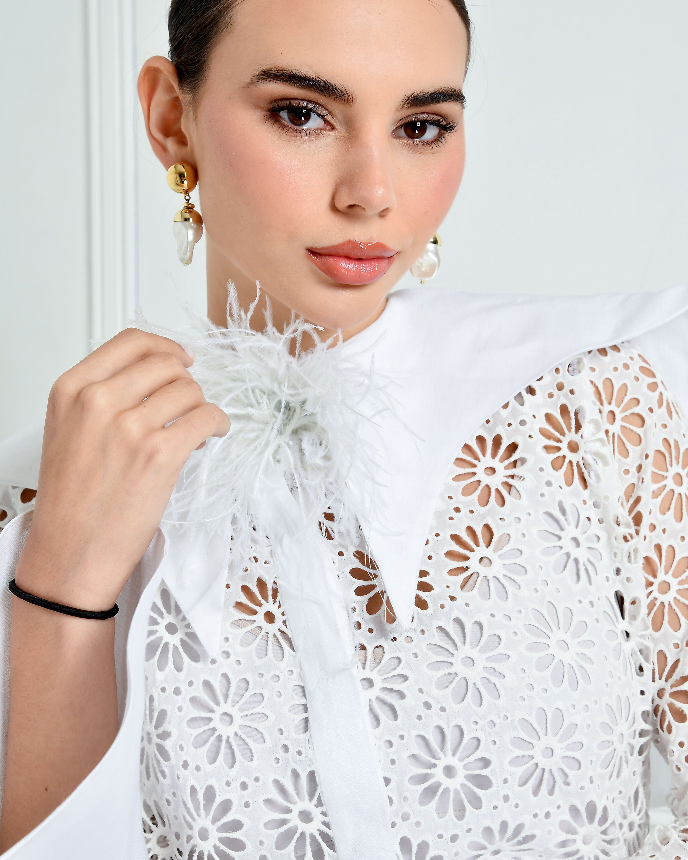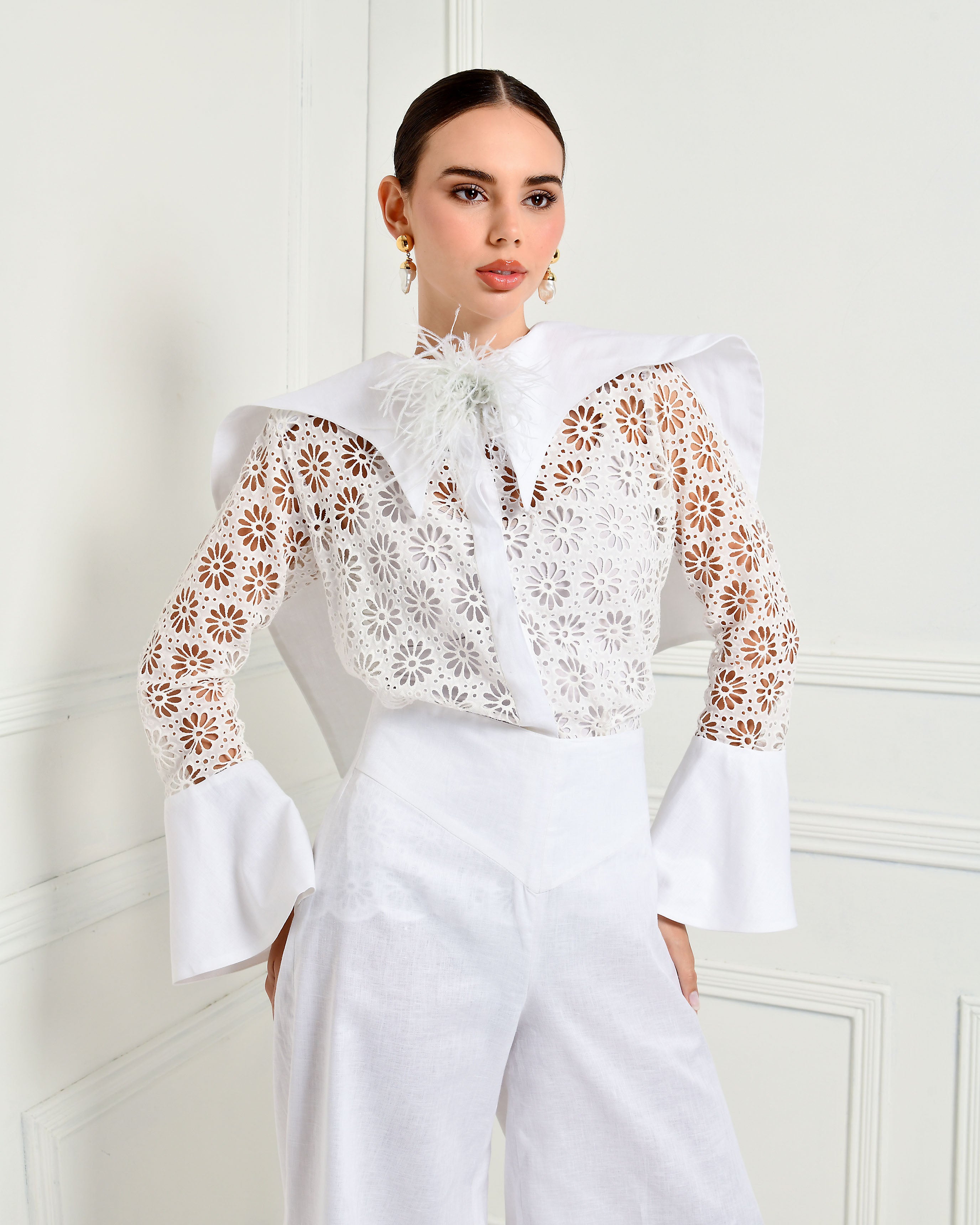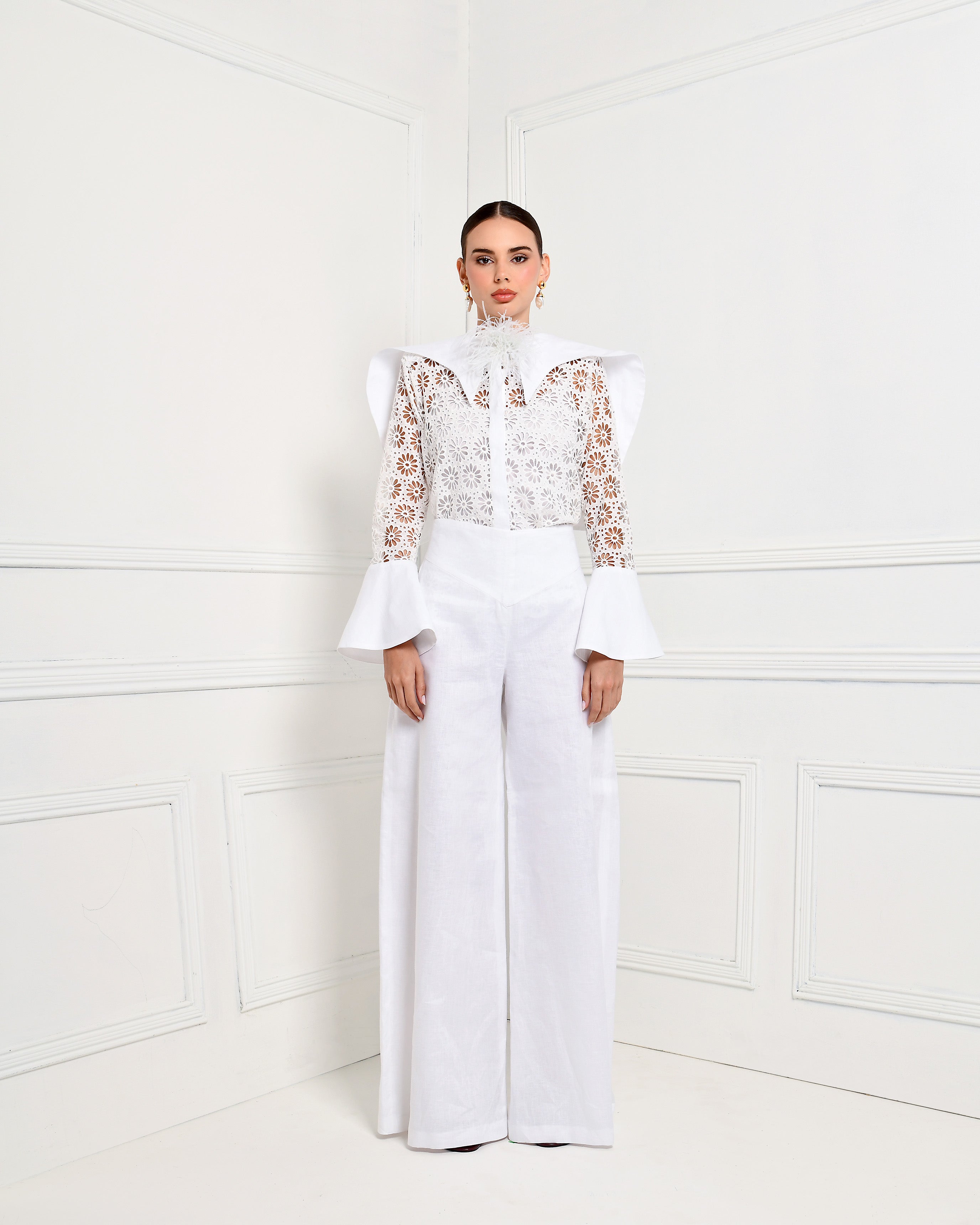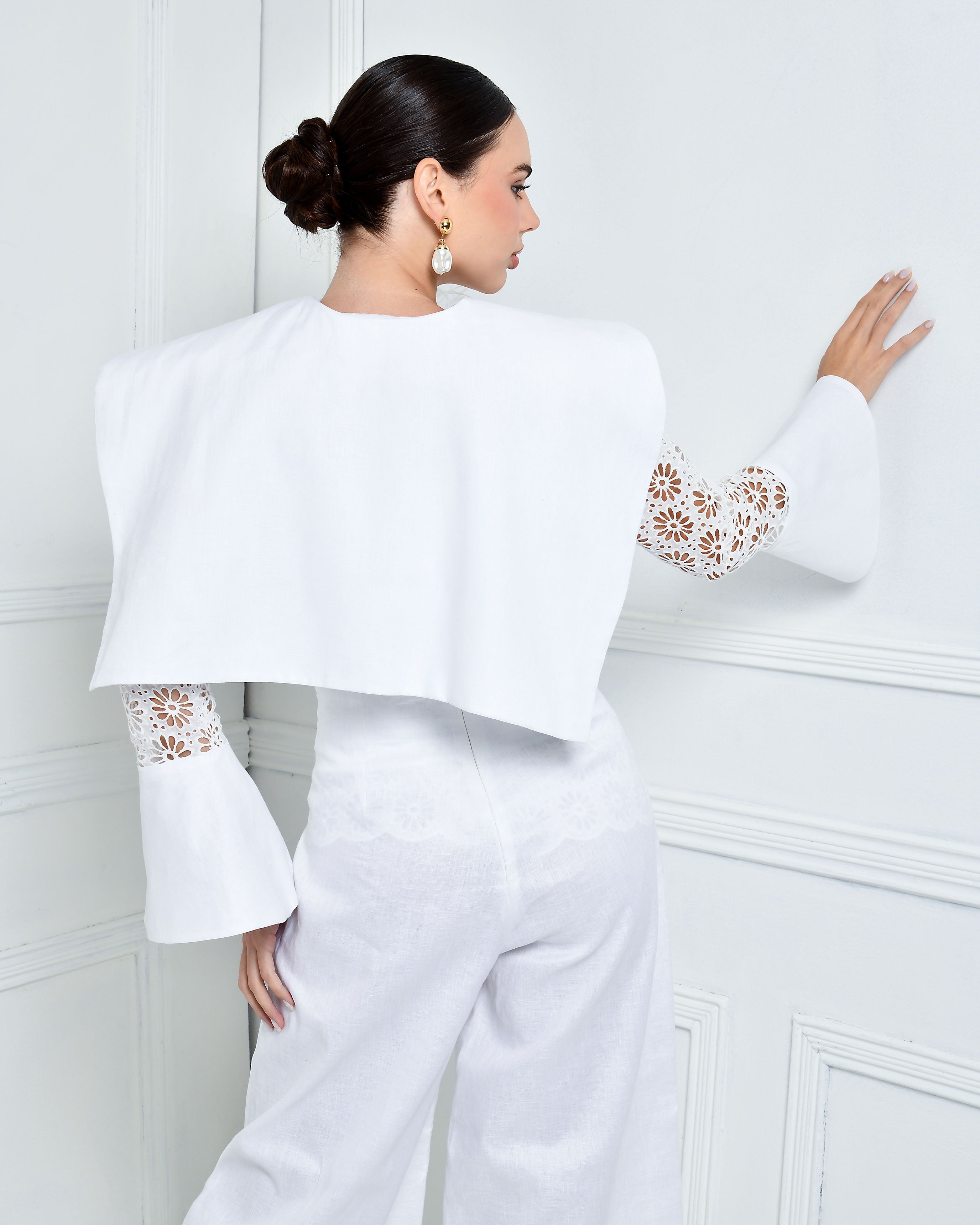 Set en lino blanco y ojalillo que resalta por su delicadeza textil y su presencia sutil. El...