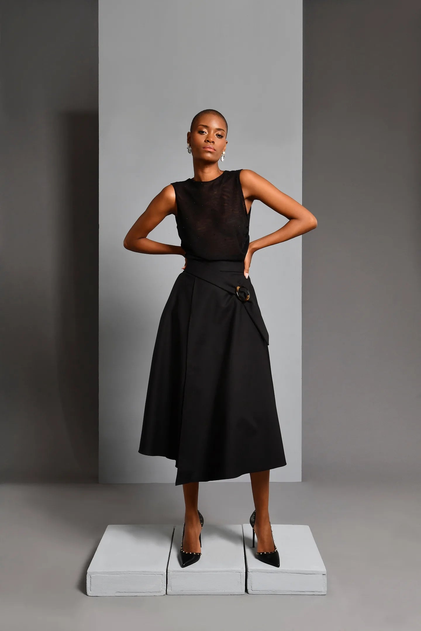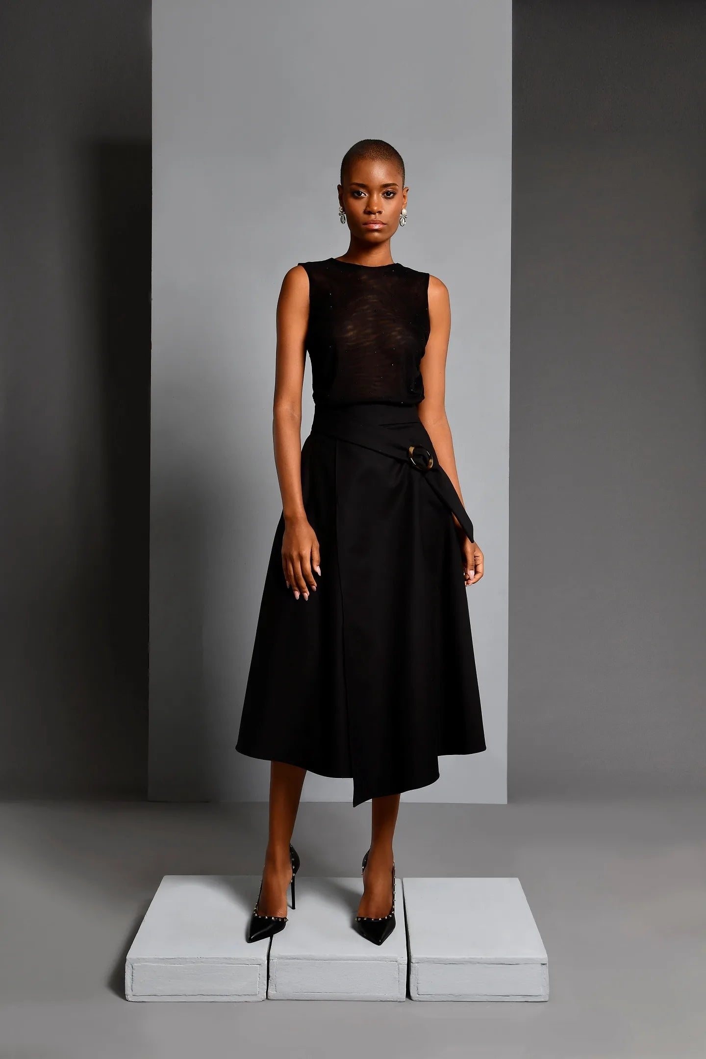 Blusa confeccionada en tela de malla negra sin mangas que aporta ese toque de sensualidad.