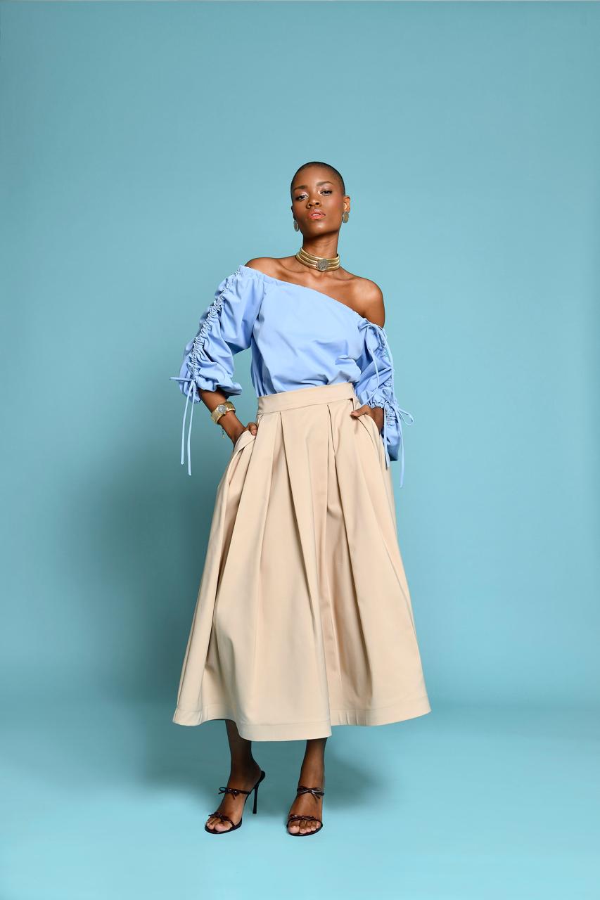 Falda elegante y versátil en color Standford Caqui, diseñada a la altura midi para un estilo clásico...