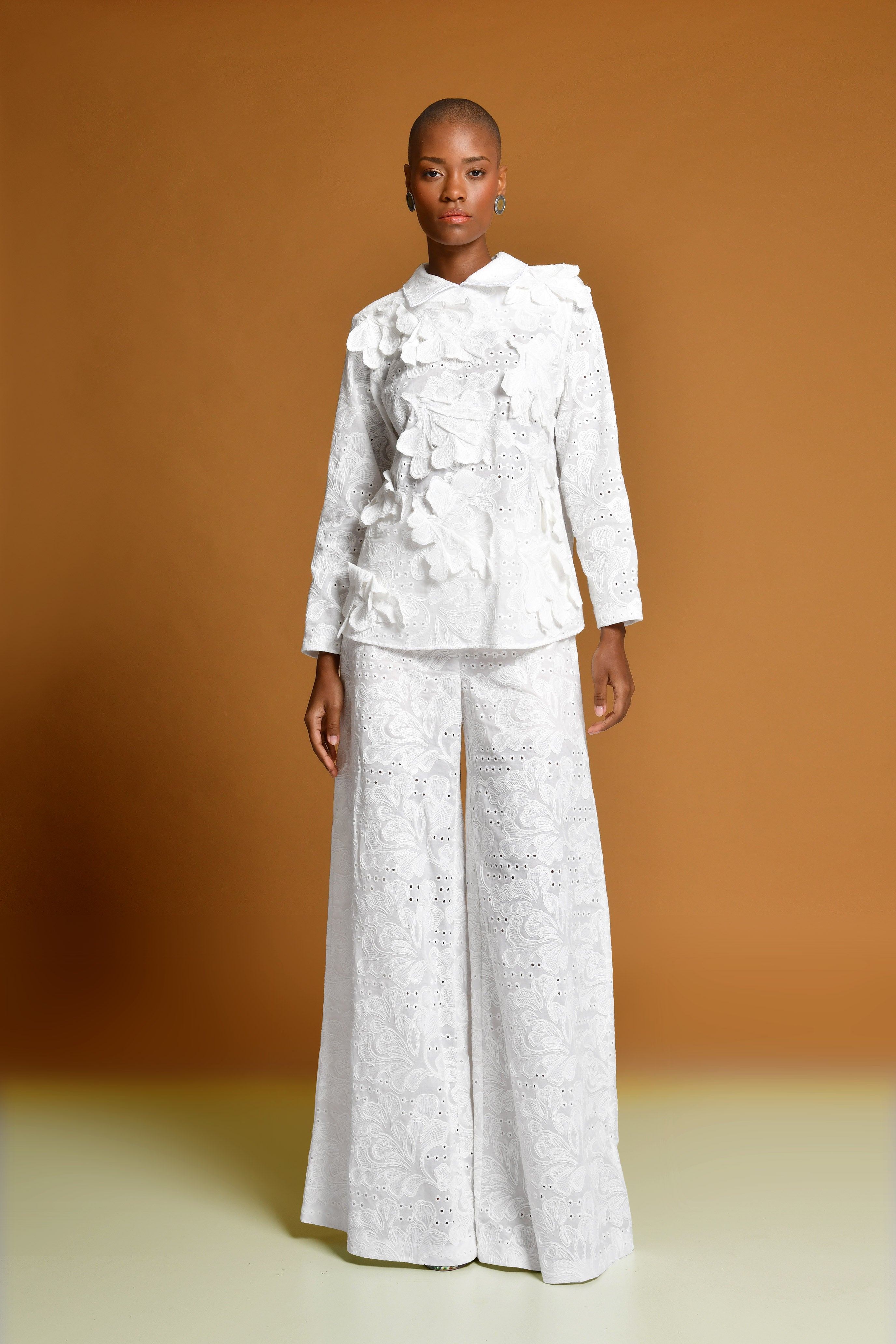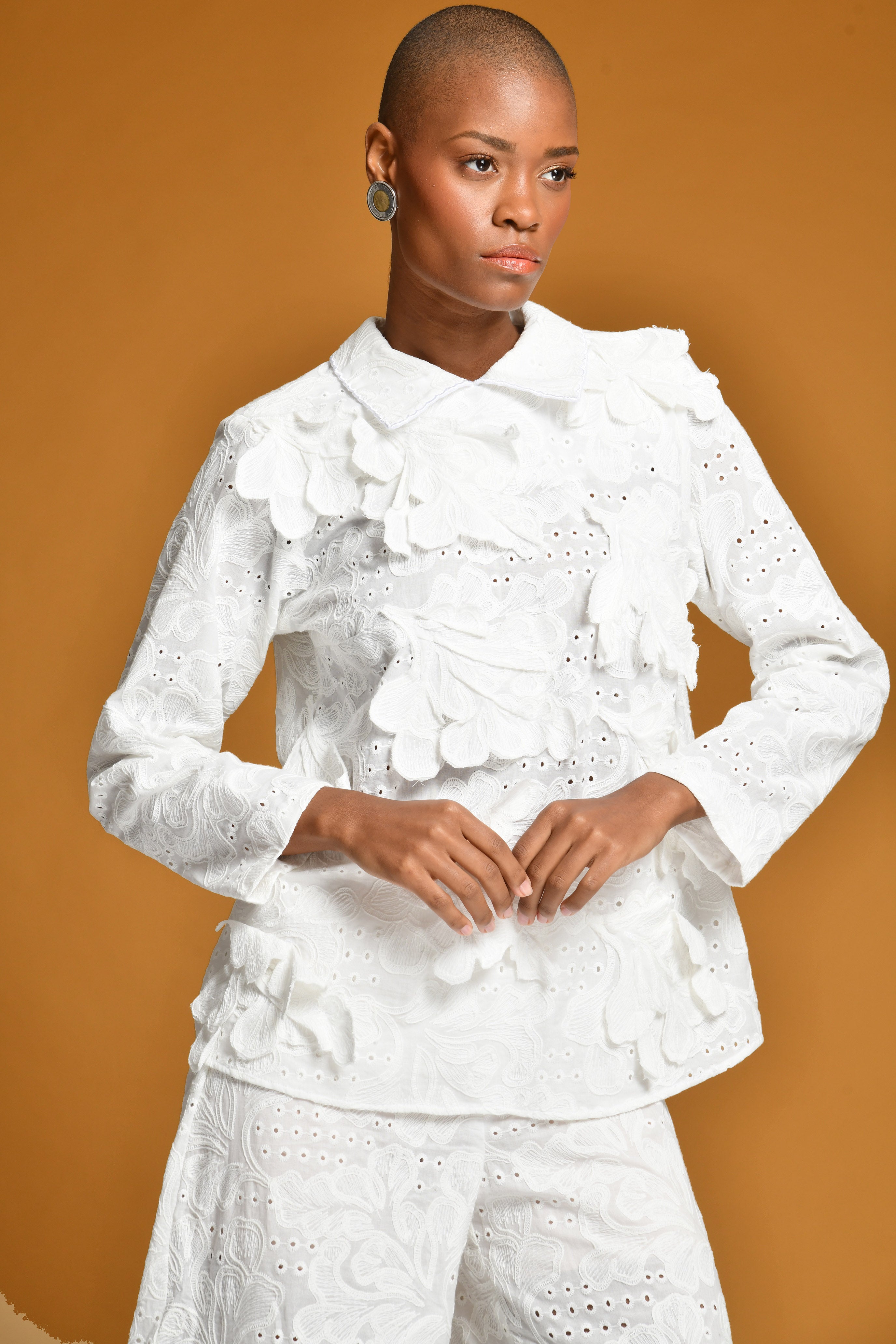 Set de camisa manga larga con detalles en 3D en la parte delantera y cuello bordado en...