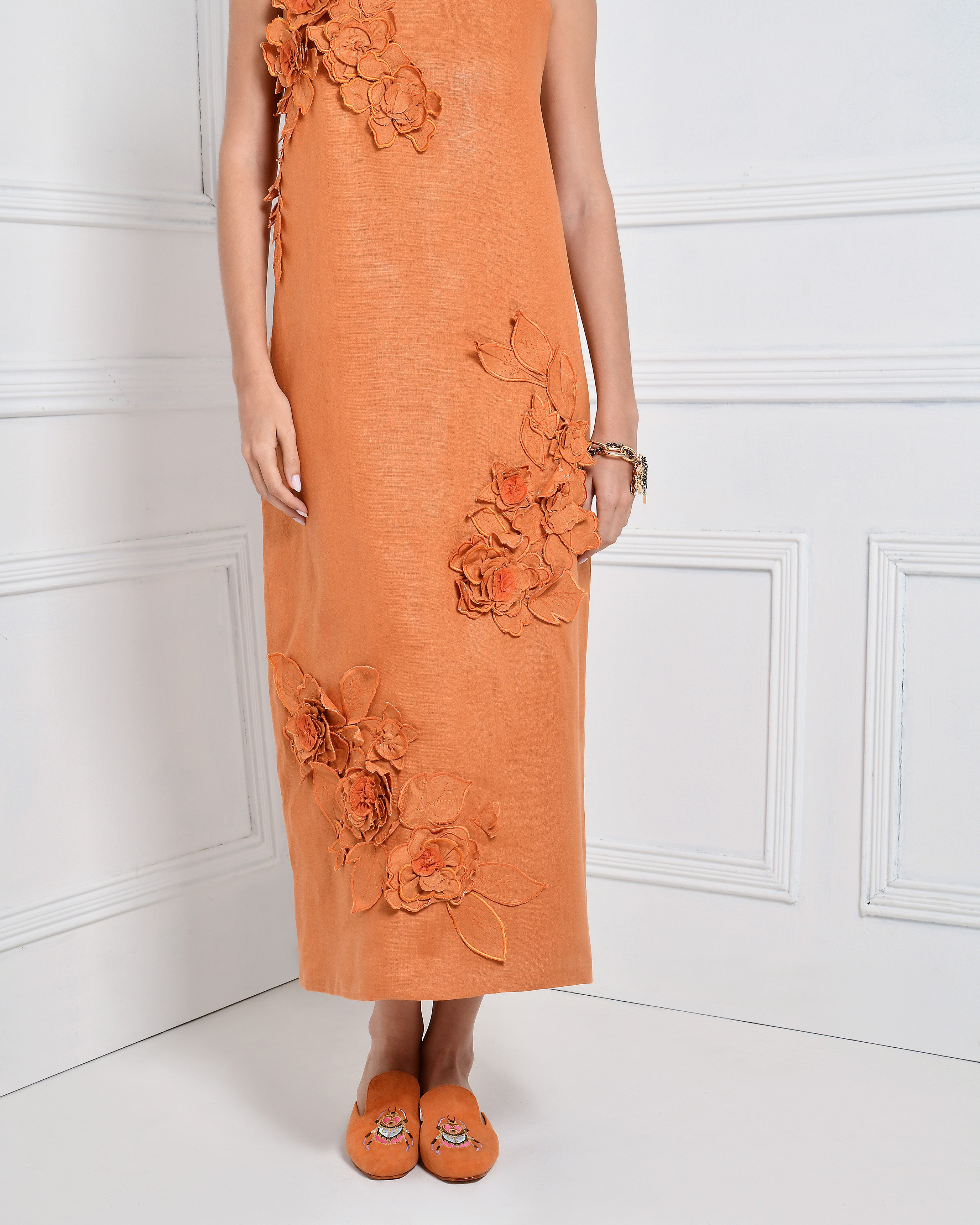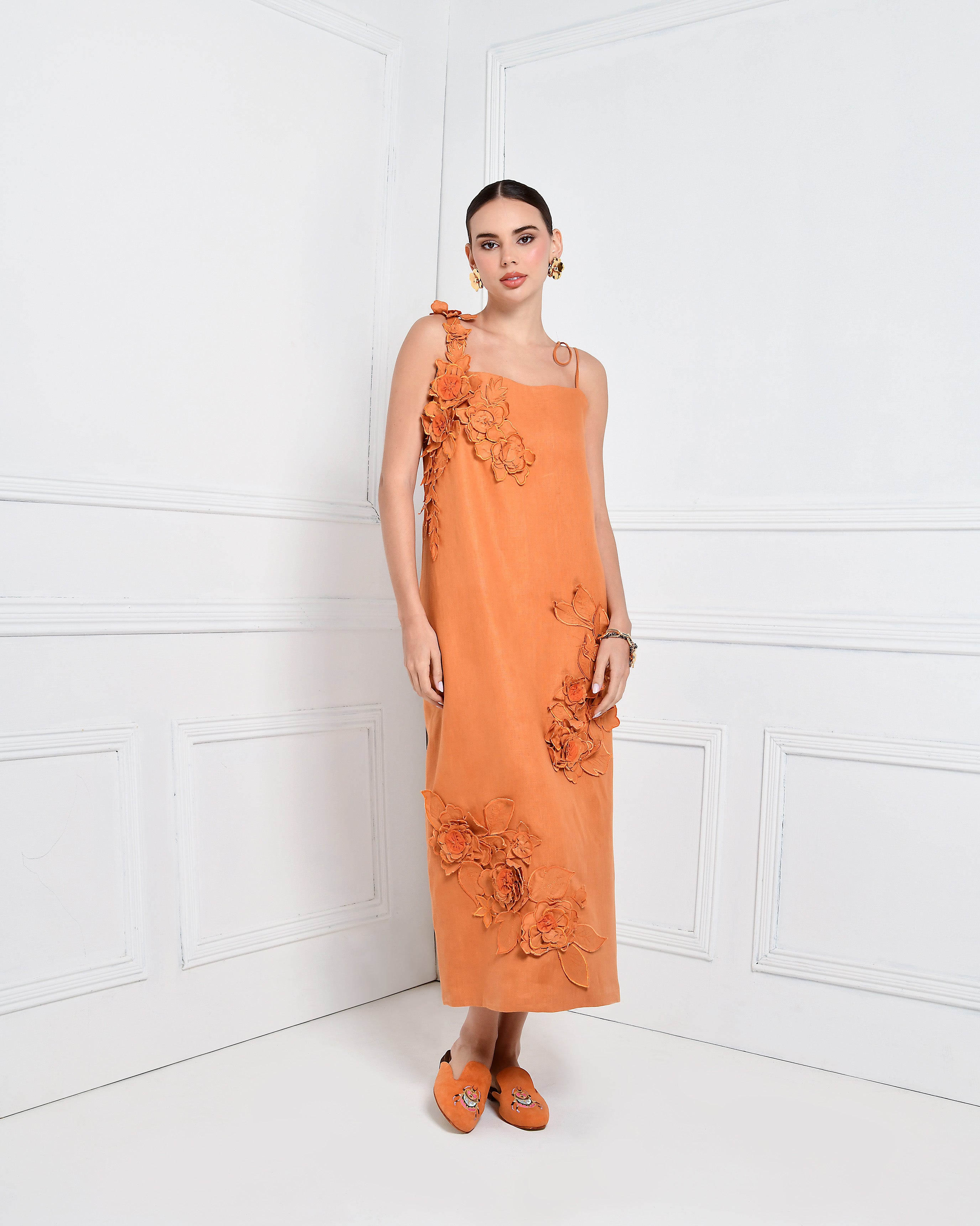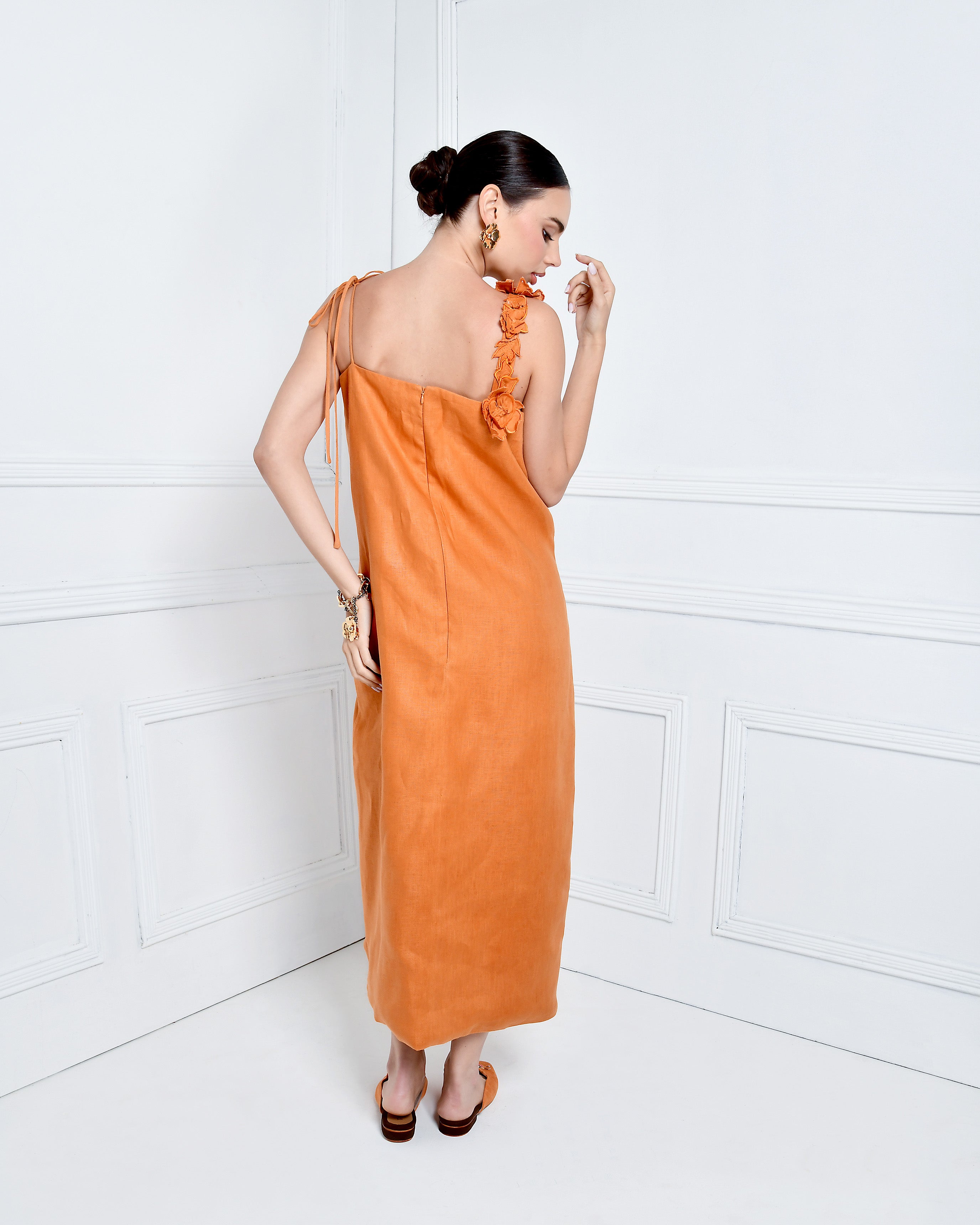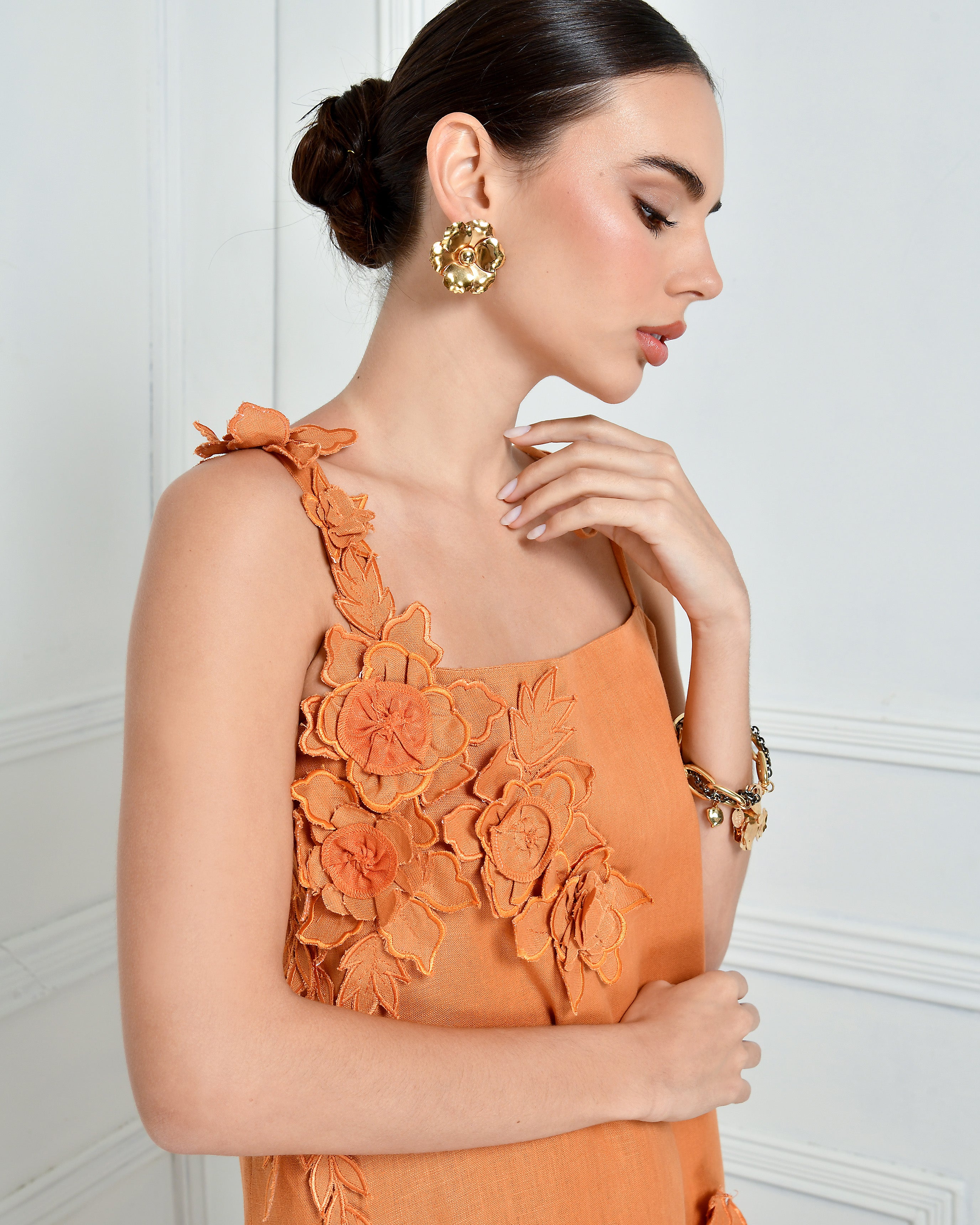 TALEGO CON TIRANTES Y FLORES BORDADAS